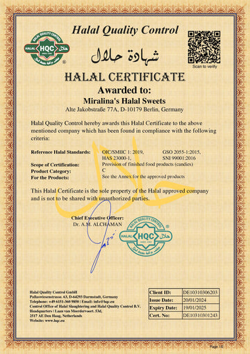 Alle unsere Süßigkeiten sind halal zertifiziert. Zum Halal-Zertifikat.